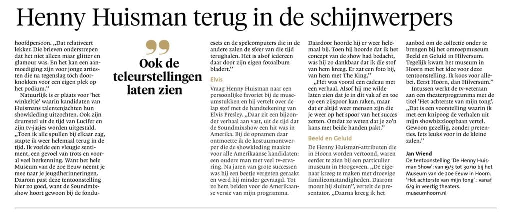 28-12-2024 | 23:54:45 - Henny in de Telegraaf: "Ik ga nooit met pensioen."
